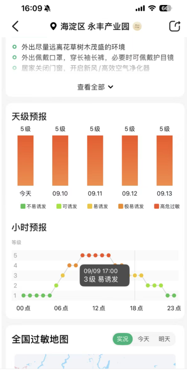 打开App即可清晰查看实时过敏风险指数,快速掌握防护重点。