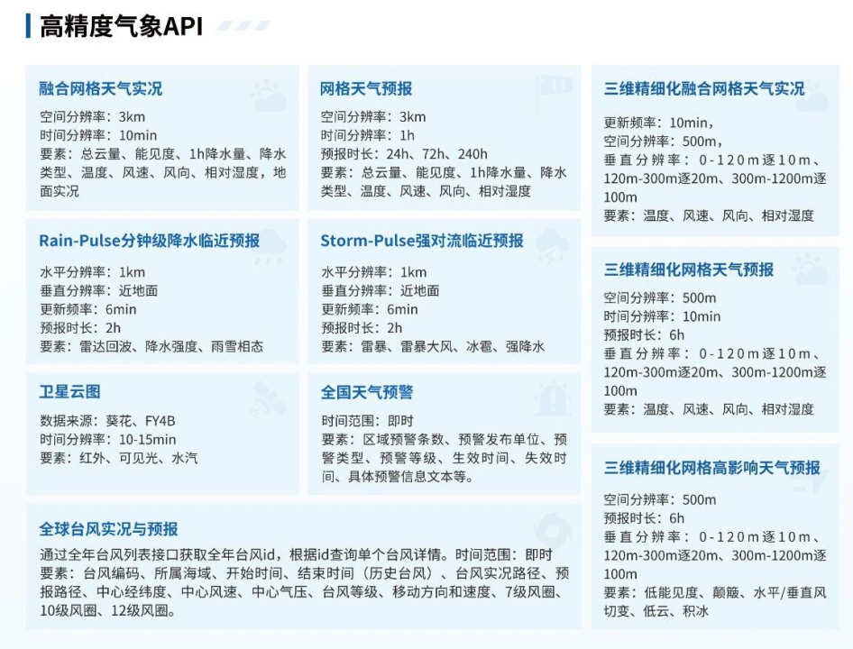 星图维天信基于多源数据融合与AI气象大模型构建的新一代低空气象服务平台,实现了二维广域覆盖和地表至1200米空域的三维立体感知,提供10+种高精度气象API服务,为低空物流、农业植保、新能源运维等场景提供公里级到百米级、分钟级的全维度气象数据服务和气象大模型私有化部署服务。