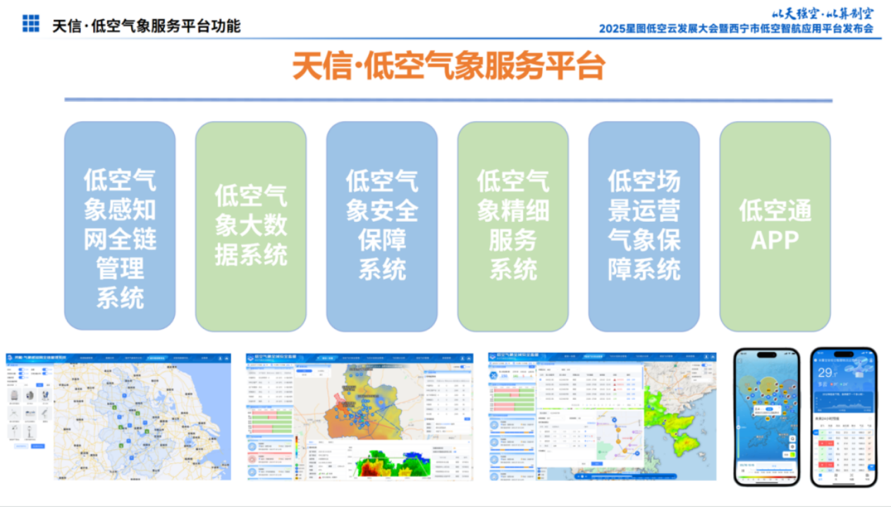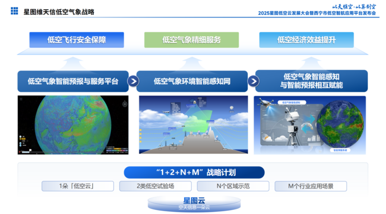 基于中科星图“1+2+N+M”低空发展战略,星图维天信重点聚焦气象安全保障领域,构建了从低空气象智能预报与服务平台、低空气象环境智能感知网到低空气象智能感知与智能预报相互赋能的产业发展路径,自主研发“天信·低空气象服务平台”及系列核心产品,形成了覆盖低空全场景的气象服务解决方案。