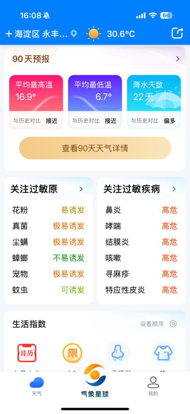 看天APP以科技创新持续拓展健康气象服务边界,从分钟级降水预报、极端天气预警到智能过敏防护,我们始终致力于将气象数据转化为守护您的健康方案。未来,我们还将持续探索空气质量、健康指数、低空出行等更多场景化功能,让科技服务于生活,践行“科技看天,真心懂你”的品牌理念。