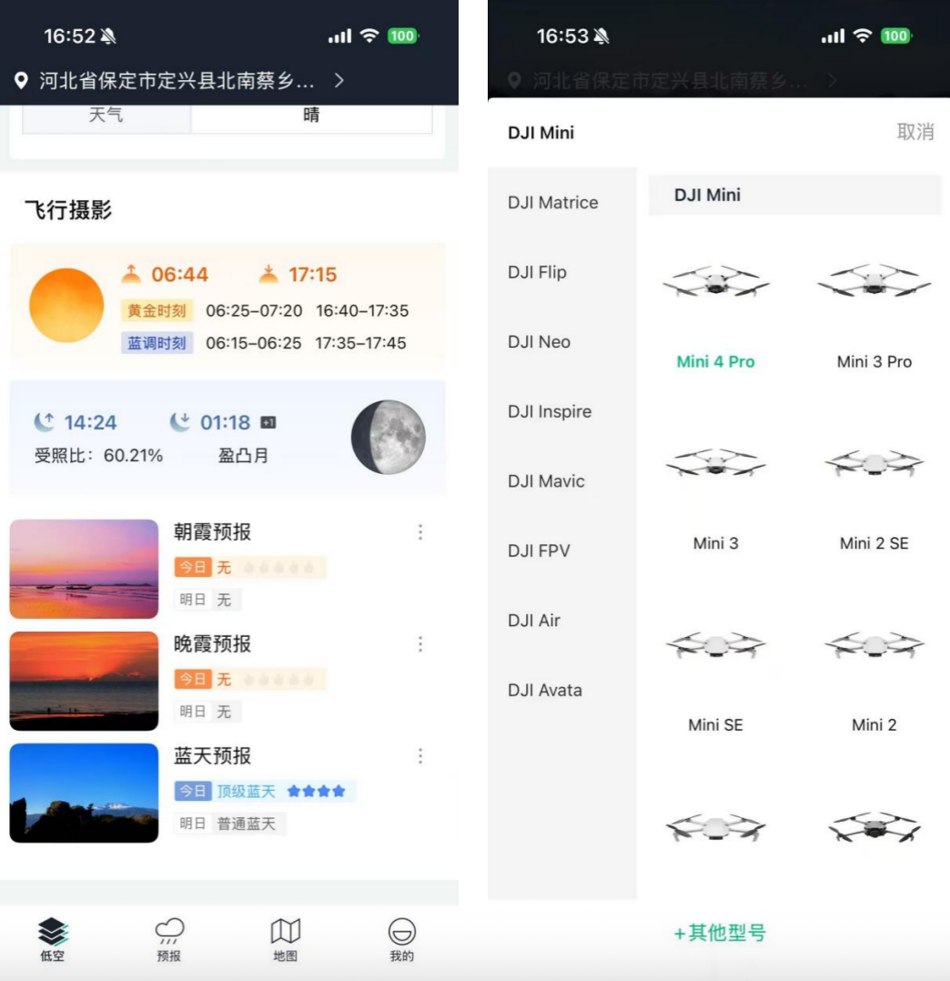 可提前了解目标区域的天气与光照条件,结合航拍理想气象条件进行决策