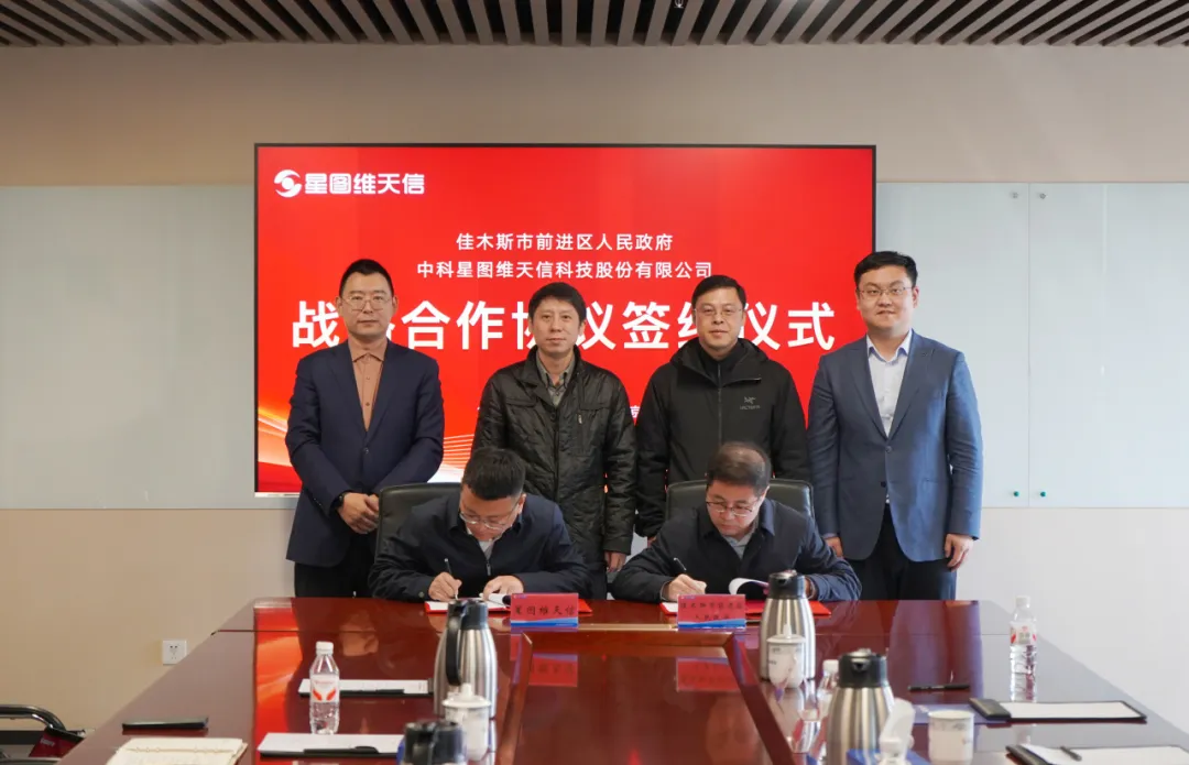 近日,佳木斯市委常委、副市长李佶一行莅临中科星图维天信科技股份有限公司(以下简称“星图维天信”)考察调研,并出席佳木斯市前进区人民政府与星图维天信战略合作框架协议签约仪式。佳木斯市工信局局长国宏利、前进区政府副区长徐亮等陪同调研。星图维天信高级副总裁张攀等公司领导热情接待并参加座谈,低空农业事业部相关负责人一同参加。